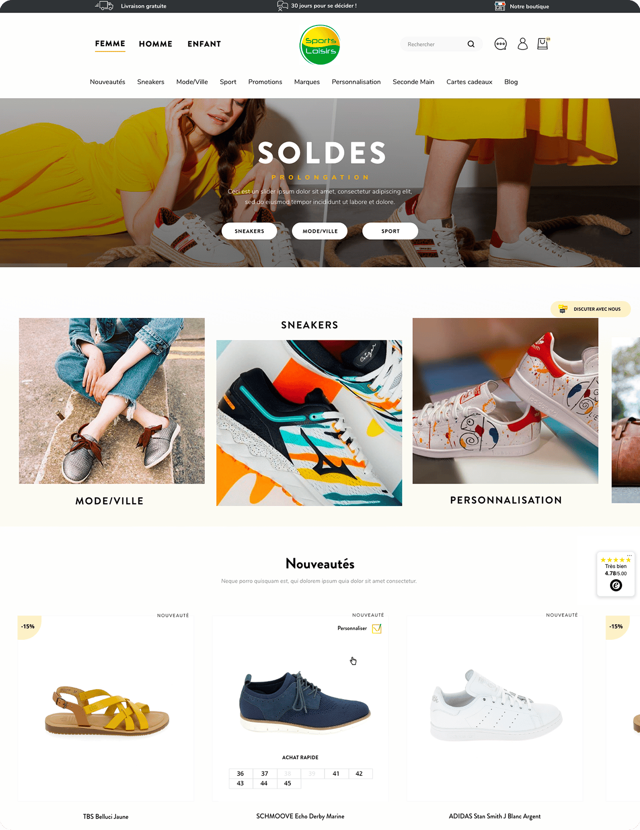 Notre équipe a voulu proposer un site e-commerce qui s’inspire des plus grands noms tout en apportant une identité propre. En outre, nous voulions présenter la qualité de services digne de plus grandes enseignes tout en insistant sur la proximité et la réactivité de l’équipe familiale derrière Sports Loisirs.