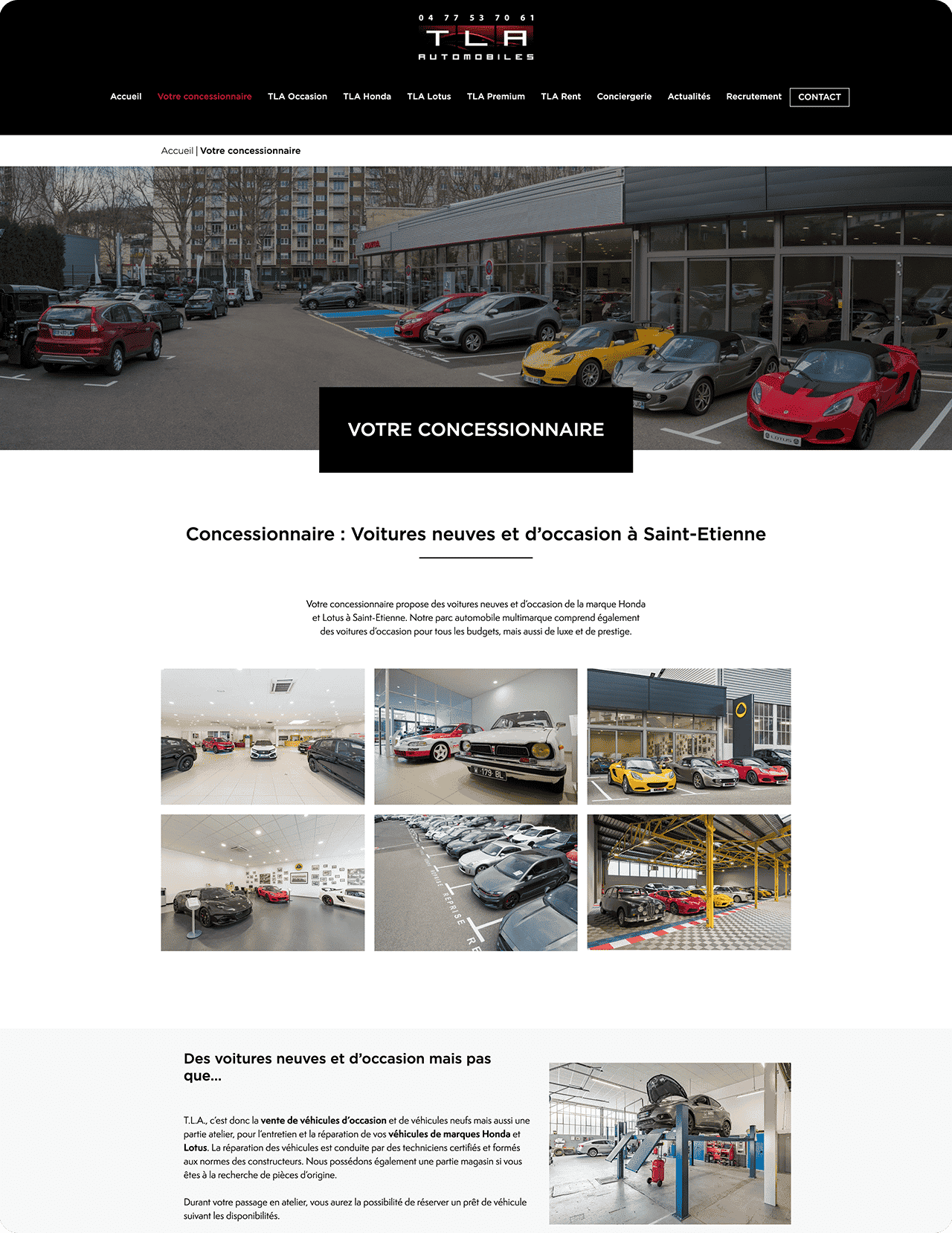 Le site web de T.L.A. automobiles est très épuré et laisse place aux visuels qui représentent la majeure partie du site.
